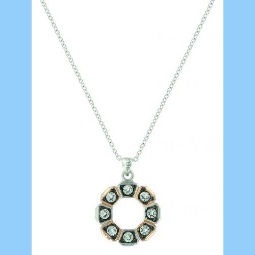 NEW Montana Silversmiths Necklace Montana Silversmiths Horseshoe Nail Wreath Necklace. A brilliant necklace with a modern take on a horseshoe nail head. Multiple nail heads are set in an alternating pattern in silver and rose gold finishes in a wreath design. Each nail head has a bright clear round stone in the center for a bit of added sparkle. A larger necklace pendant hangs on a princess length 19 inch chain. We gladly combine ship - just let us know. |