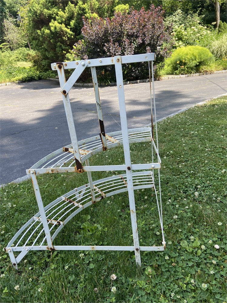 Shabby chic white painted metal plant stand, sturdy but light.