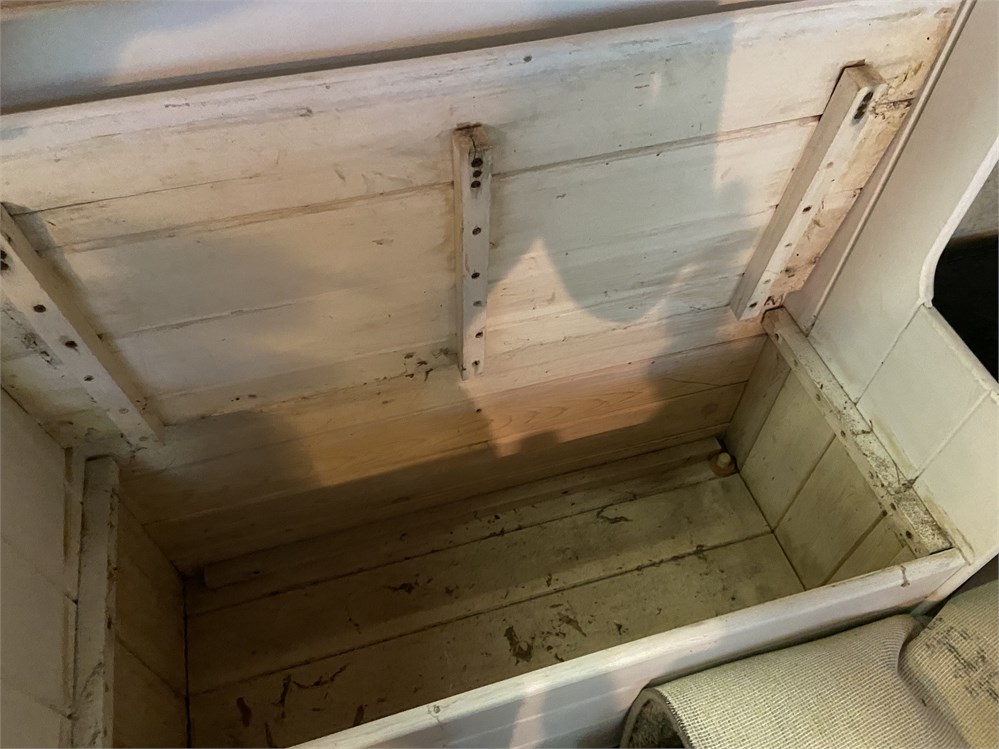 White wooden bench with storage under seat View Watchlist >
