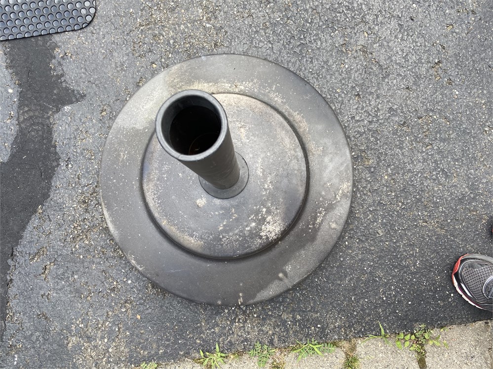 Very heavy and effective weighted holder for a patio umbrella. Large scale. Holds umbrella pole up to 2" diameter.