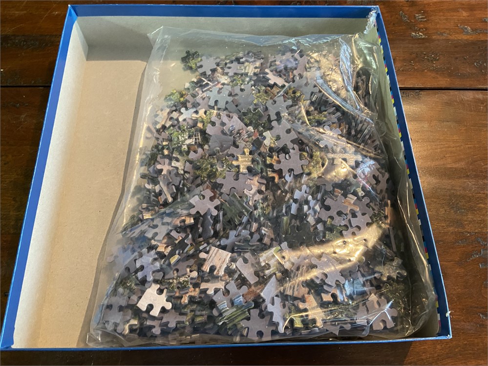 Unopened puzzle, knitting kit (partially completed but lots of yarn left), lantern crafting kit