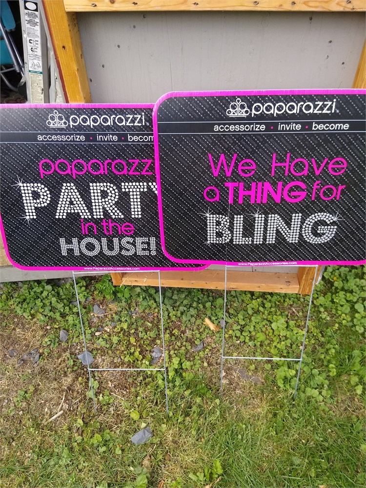We have 3 used paparazzi jewelry business signs up for grabs.