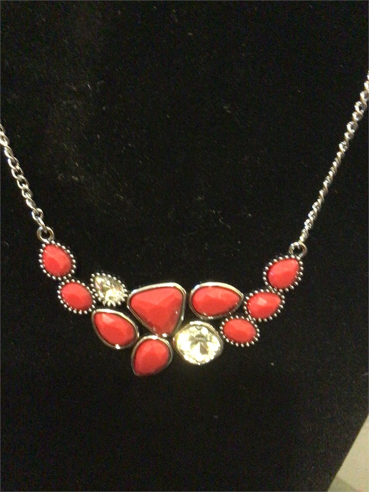 Silver color chain with clear and red stones View Watchlist >