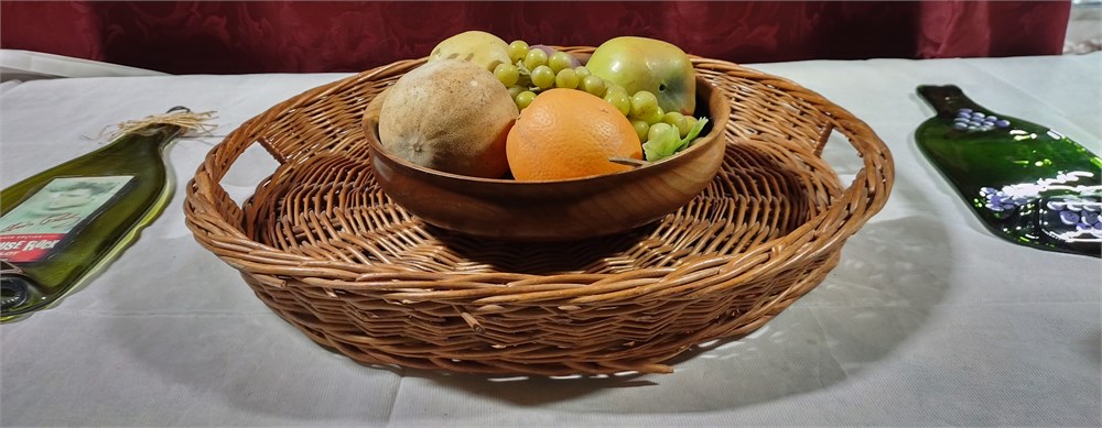 Cutting block , handmade melted bottle with elvis decal fake fruit bowl serving tray marble cheese slicer apple toothpick tin