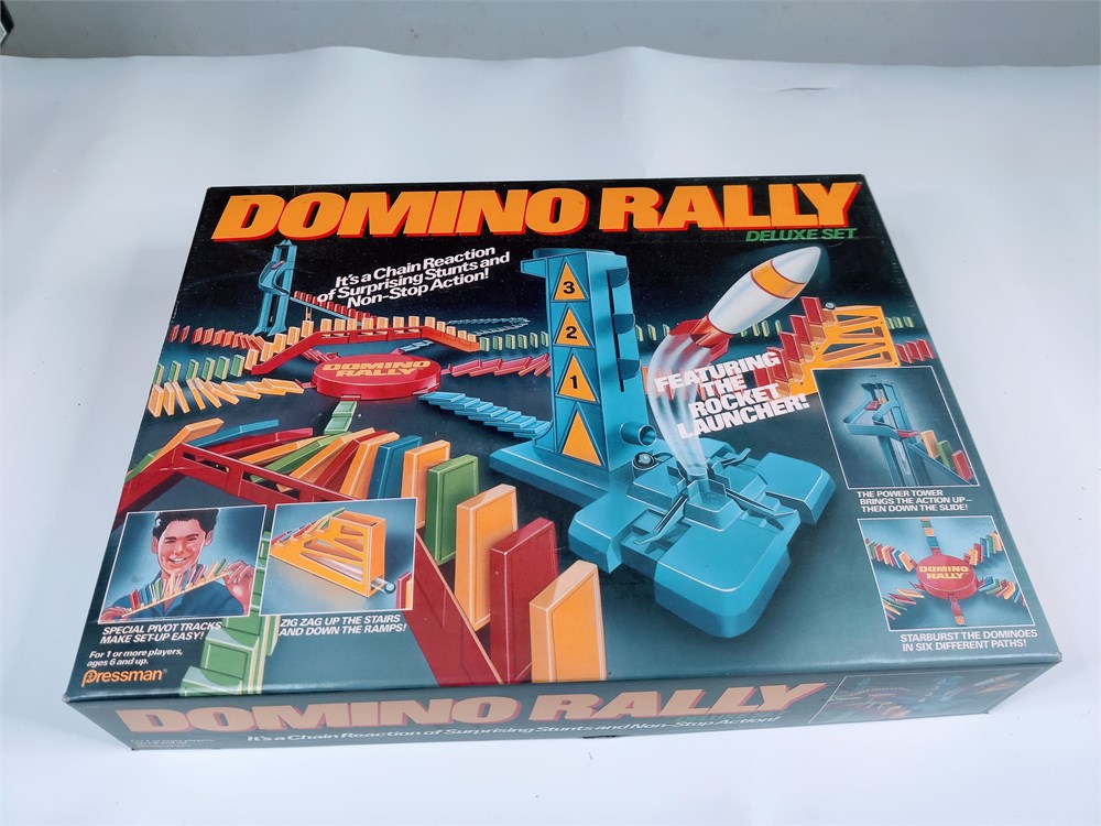 Domino rally deluxe set it's a chain reaction of surprising stunts and non-stop action