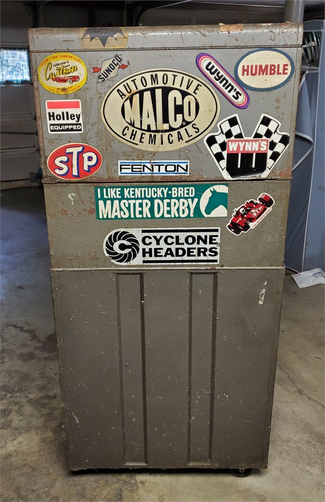 Super cool tool box with The nostalgia of all the hot rod stickers!