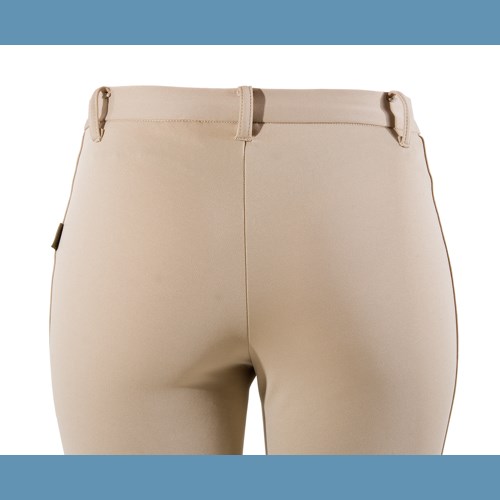 The Versailles show breech comes in a classic traditional fit perfect for the show ring. Contoured design eliminates bagginess behind the knees and provides maximum comfort and stretch. Plush elastic waistband does not roll over. No inside leg seam. Clarino® synthetic micro suede knee patches. Reinforced seams and belt loops. Heavy duty front clasp and brass front zipper. Slash zipper pocket. Elastic ankle panels. Classic rise hits about at the navel. Machine wash, hang to dry.