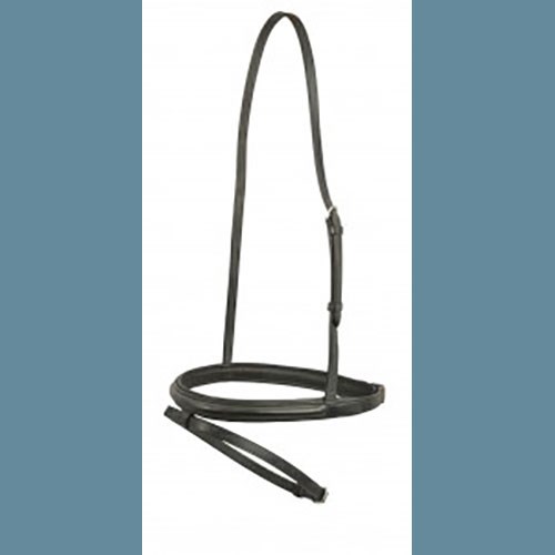 European leather and stainless steel hardware make this a quality cavesson. The cavesson and browband are soft padded and plain raised. The stitching is black and is 13 to 14 stitches per ince. There is a 1/2" sewn in flash. Warmblood or large horse size. Black.