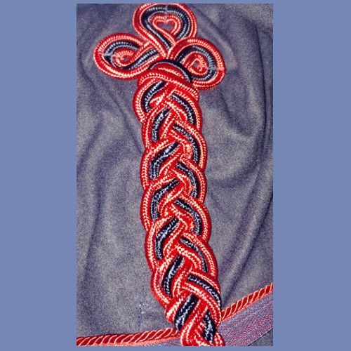 NEW Wool Rug 63" EOUS Wool Show Rug. Made from wool (60%) and rayon (40%) for great breathability. Lining is polyester. Elegant, with braided cord at the hip. And, this rug is machine washable! Size 63 - 63" from center of chest to tail; 32" from centerline of back down to bottom of rug at belly; 47" from withers to top of tail. This rug is navy with red accent. See close up pics for actual colors. Retails for $125.99
