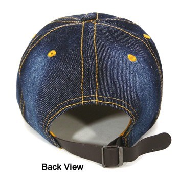 Rhinestones spell out GIRL on cap and cover the brim. Distressed edge of brim. Mid denim color. Adjustable back for custom fit.
