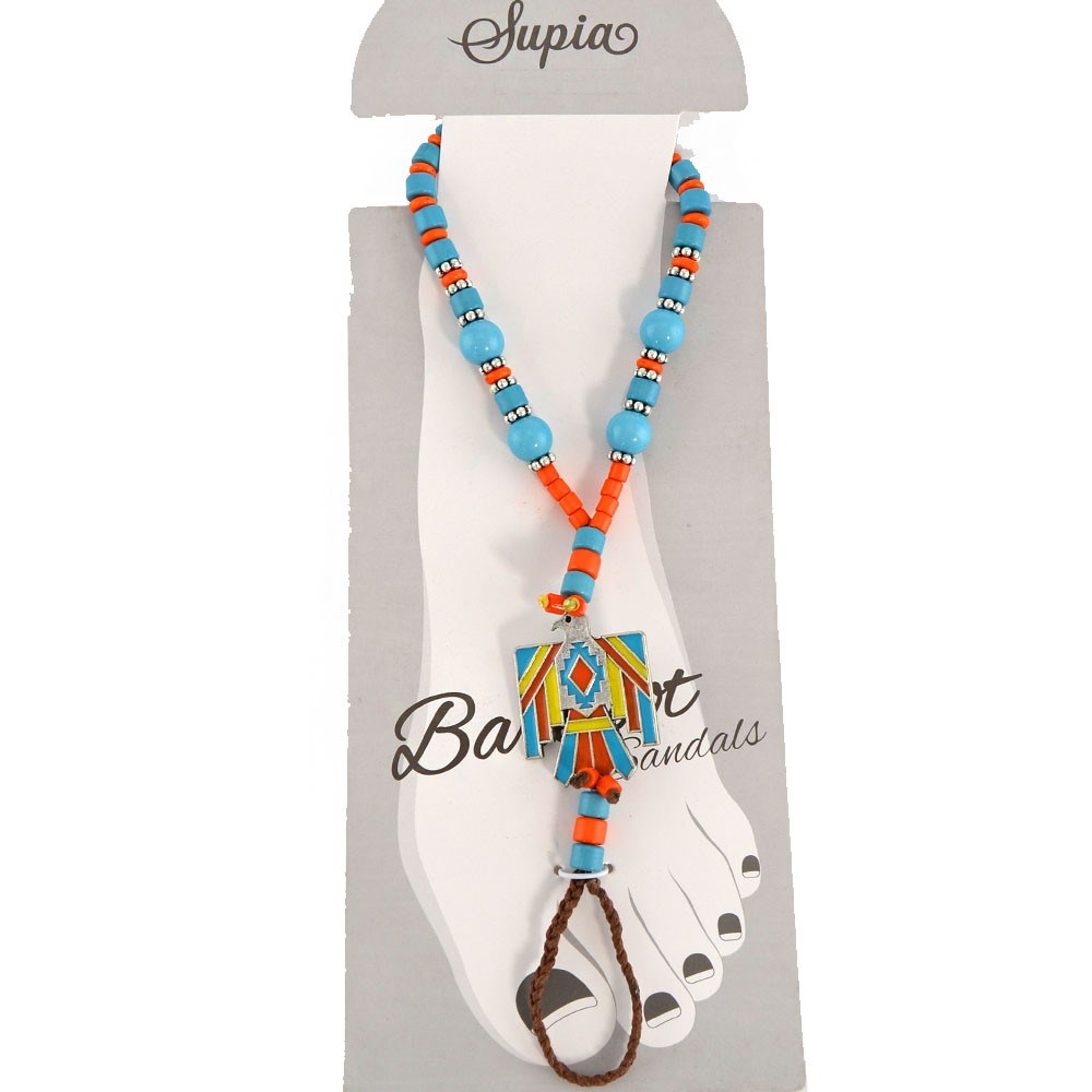Thunderbird Barefoot Sandal Thunderbird Barefoot Sandal - necklace for your feet! Colorful jewelry for your bare feet. Turquoise and orange beadwork with colorful thunderbird. Pair. We gladly combine ship, just contact us before you pay. |