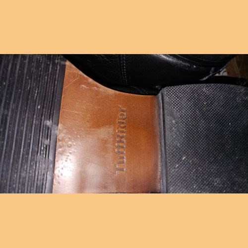 Tuffrider Regal Field Boots This versatile equestrian boot is crafted with ultra-soft leather and an elegant square toe design for a traditional look in the show ring. Made with superior grippy leather on the inside of the boot, the Regal provides stability and comfort, the perfect boot for any equestrian need. These boots were previously sold and the buyer apparently tried them on, in a saddle with stirrups that did not have stirrup treads. The marks on the sole are consistent with that. But other than that, these boots are new, with no other flaws. See pics for the marks. Get these boots at a true bargain bin price! Regular retail $249.99 Approximately 20.5" outside height; 18" back height; 14.5" calf. We gladly combine ship, just contact us before you pay. |