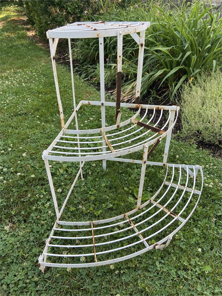 Shabby chic white painted metal plant stand, sturdy but light.