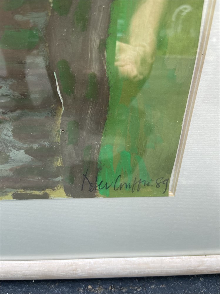 Charming painting signed Peter Griffin 89, sticker on back says Study for Roma Series. Purchased in England. Frame is in good shape, but painting needs to be repositioned.