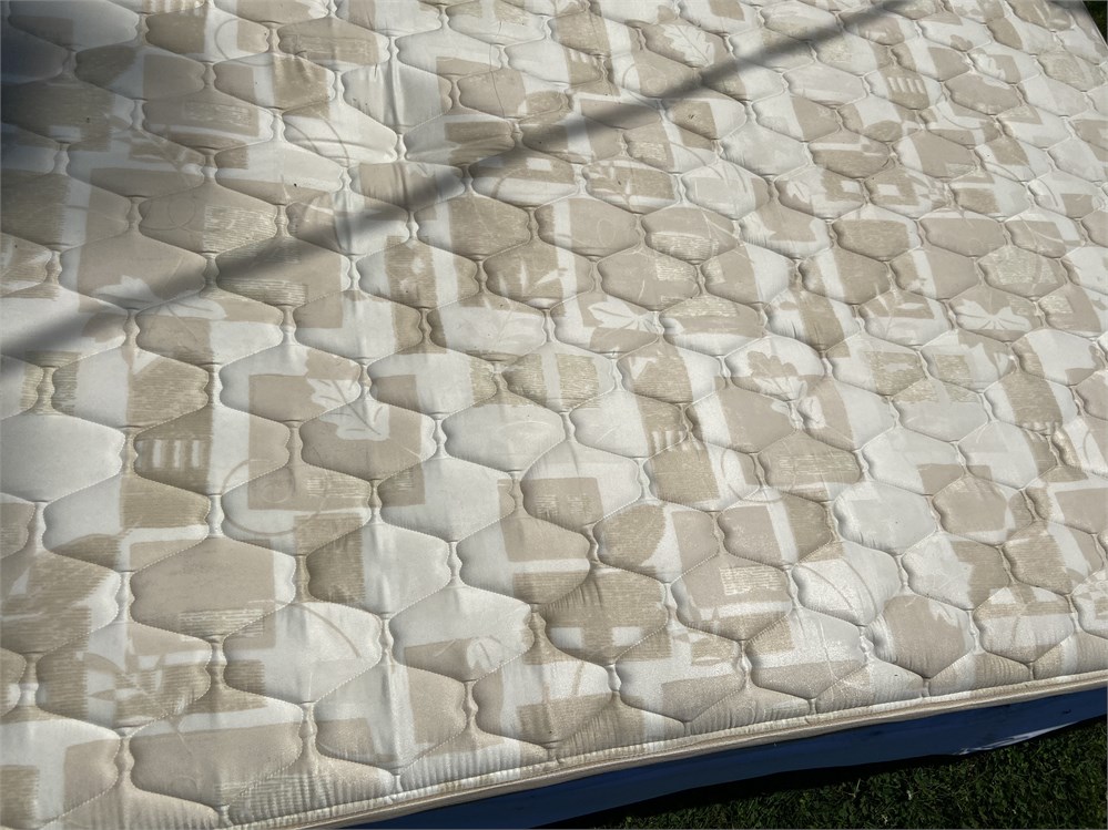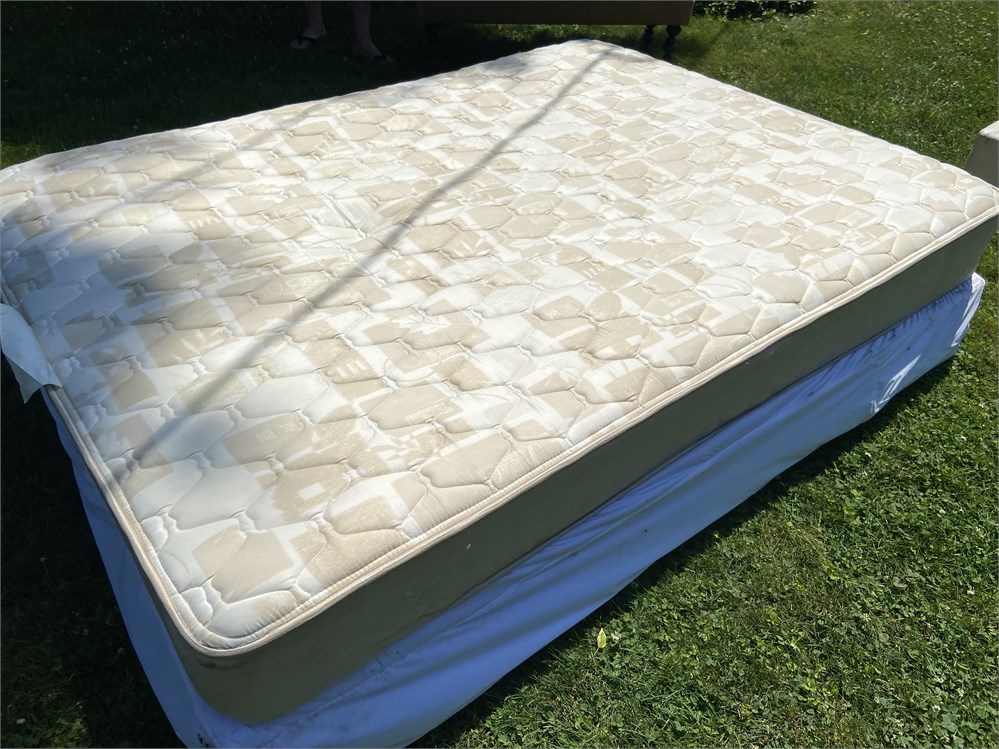 Queen size bed: Black metal headboard, mattress support frame, mattress and box View Watchlist >