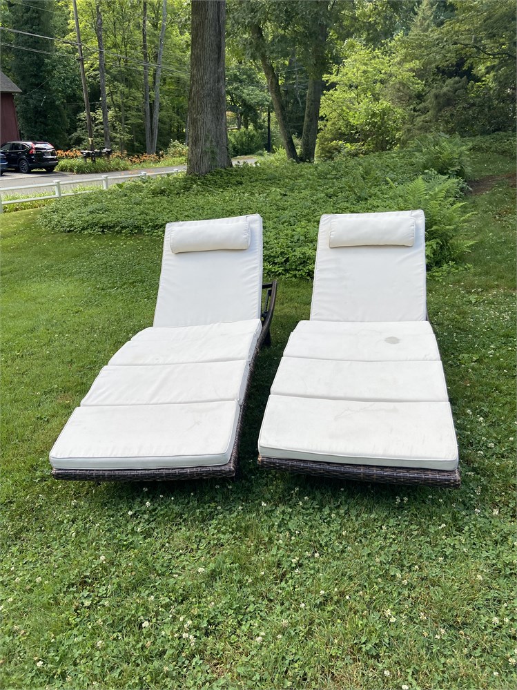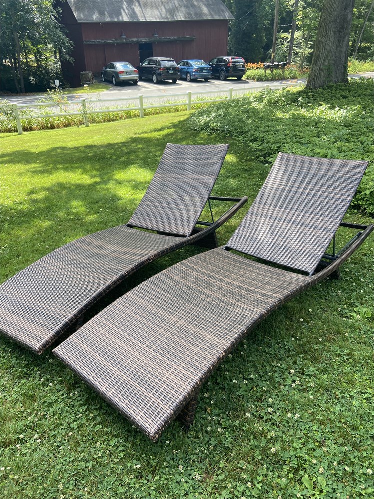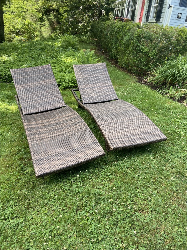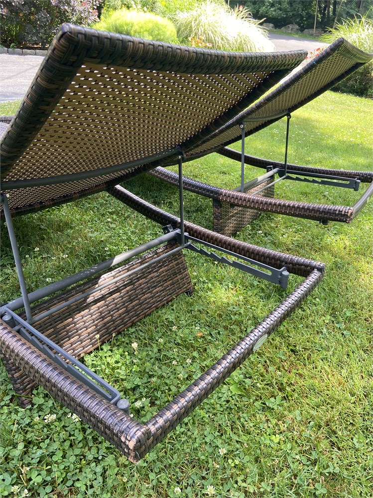 Matching pair of outdoor chaise lounge chairs with modern lines View Watchlist >