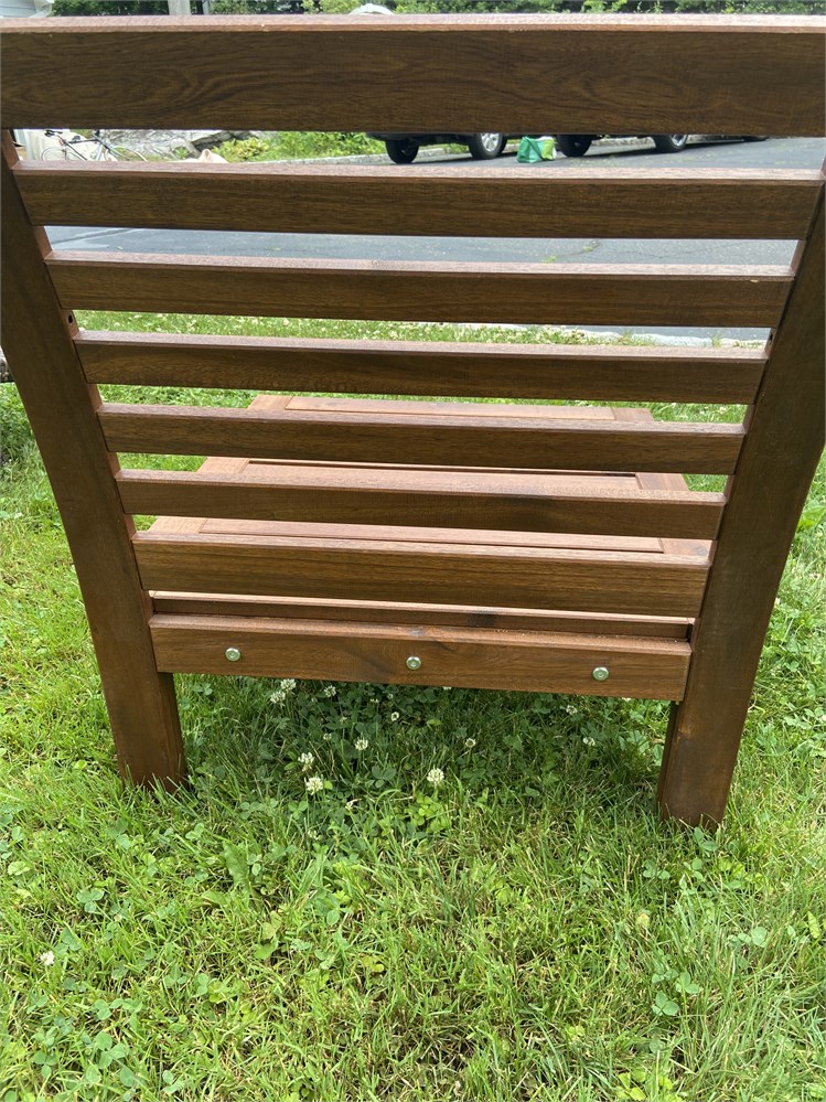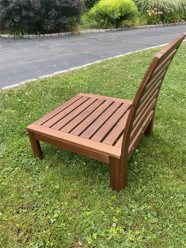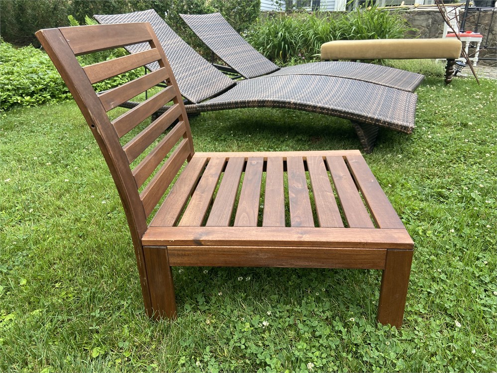 One sturdy, low lounge chair, needs cushion.