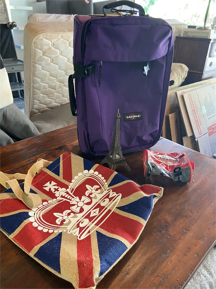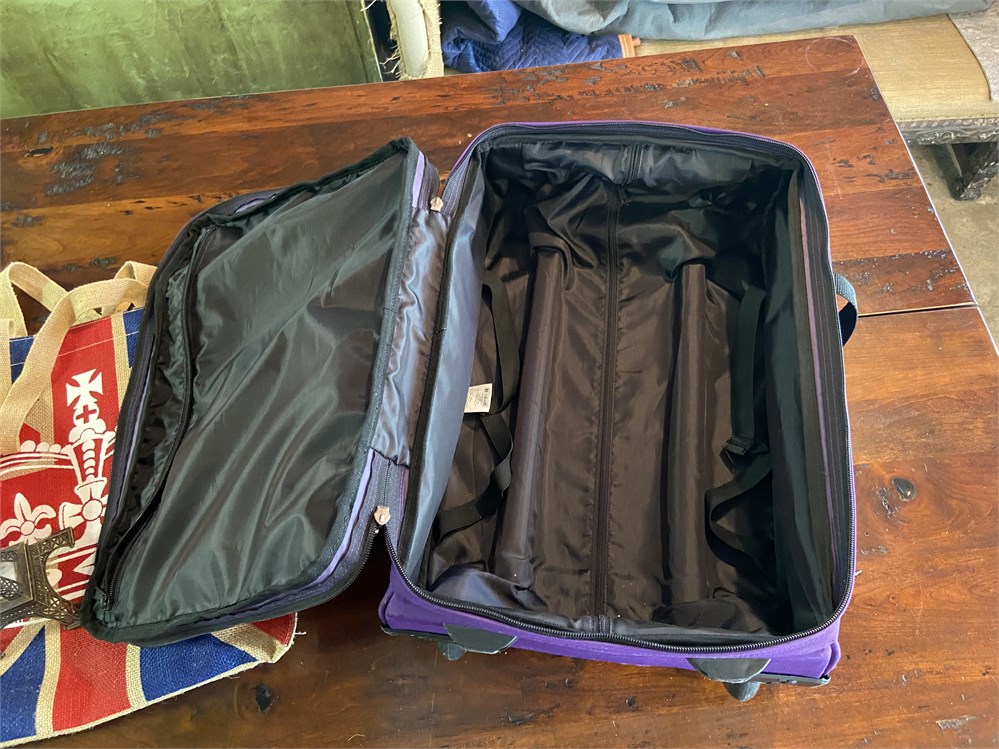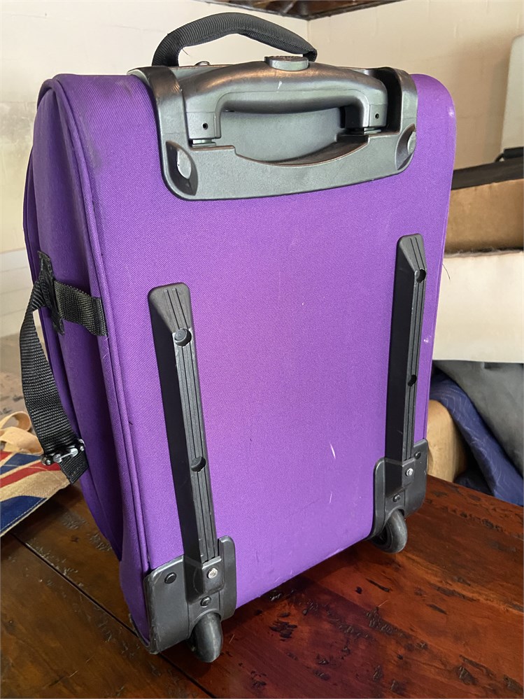 Purple Eastpak soft sided suitcase: W 13" x D 6.5" x H19"