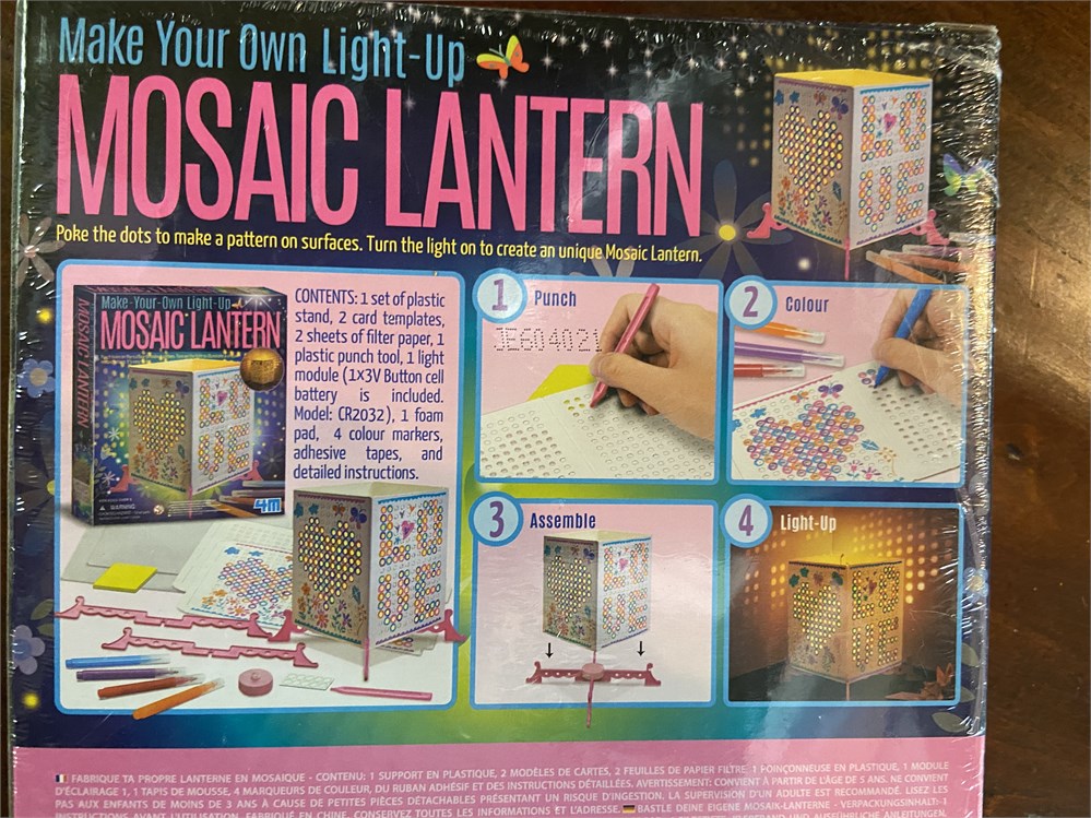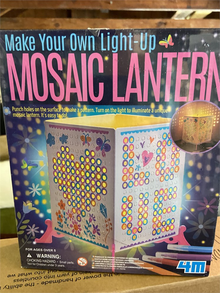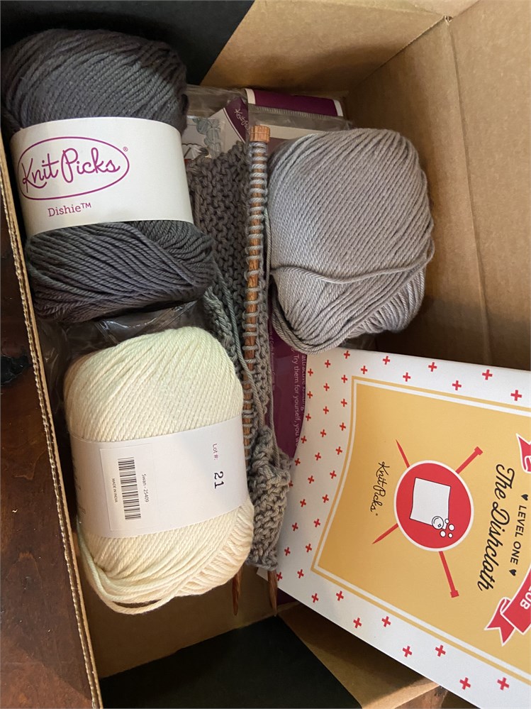 Unopened puzzle, knitting kit (partially completed but lots of yarn left), lantern crafting kit