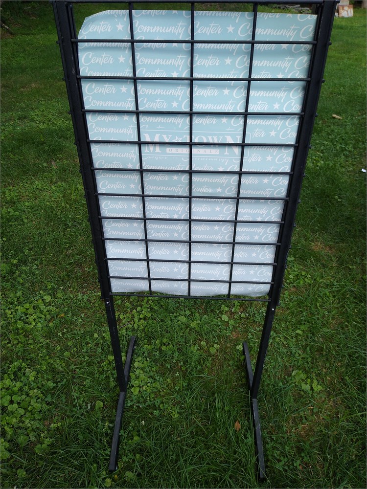 Very solid retail shop display stand. No issue. Made of metal very sturdy. No hooks included