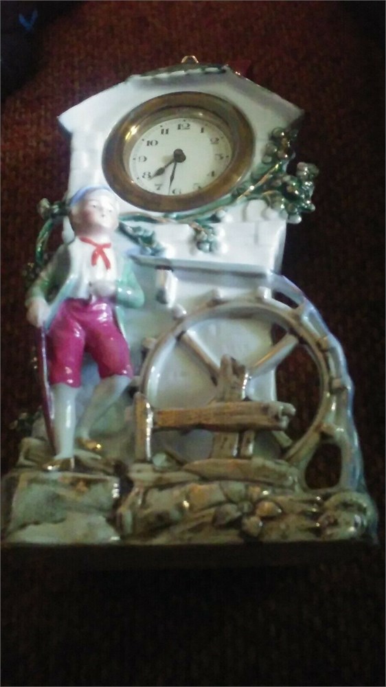 1920s Vintage German Porcelain Clock Hiker Waterwheel View Watchlist >
