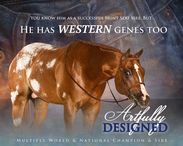 Artfully Designed stamps his beautiful head and conformation on his babies along with great minds and excellent movement. He produces Western Pleasure, Hunter Under Saddle and All-Arounders.
