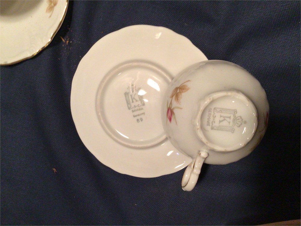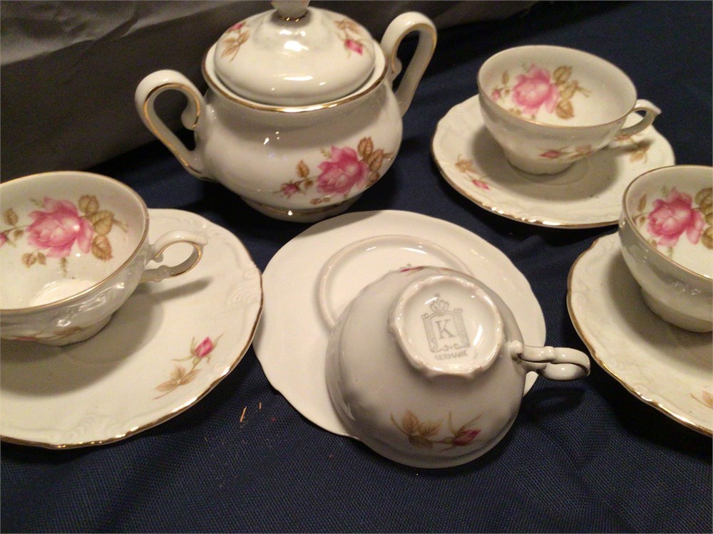 set of four tea cups and sugar dish