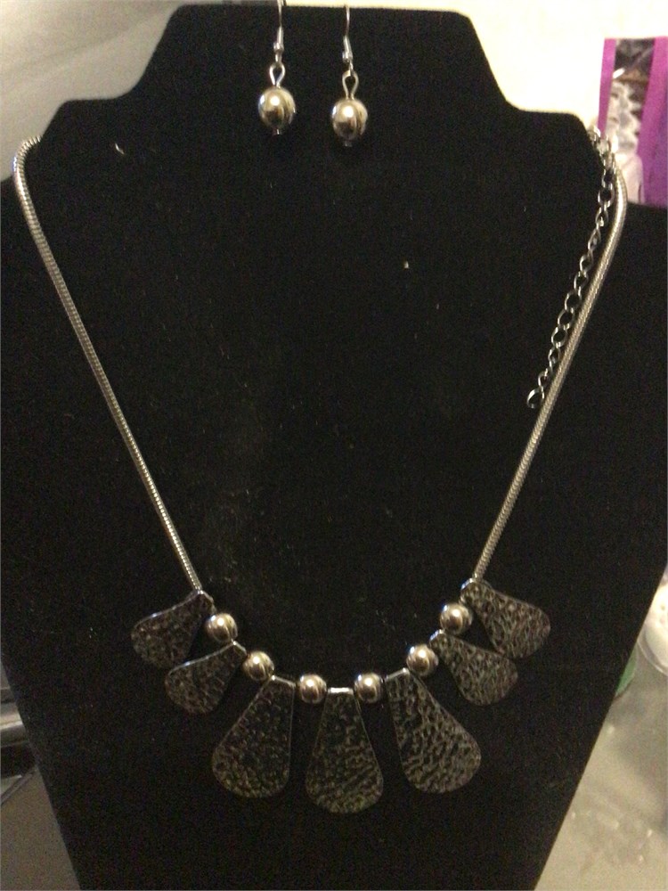 You’re getting a beautiful gun metal necklace and earring set brand new can be shipped