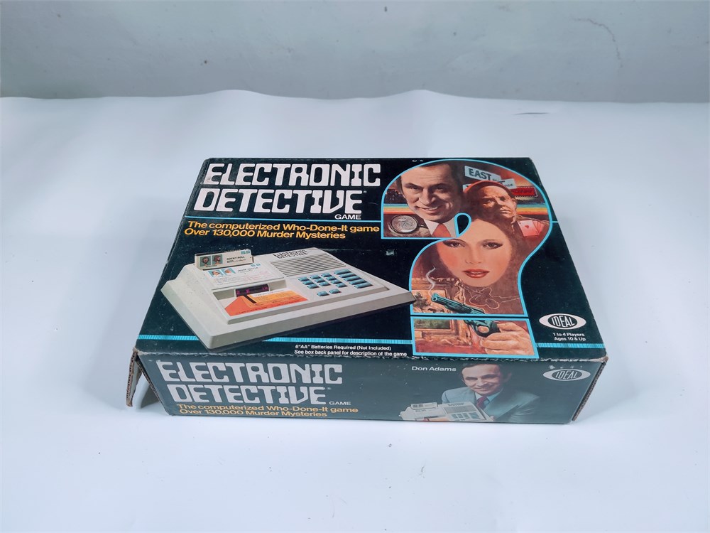 • In its powerful microcomputer brain electronic detective has all the suspects’ alibis, plus key clues pertaining to the dastardly deed. Its electronic I.Q. is at your fingertips!