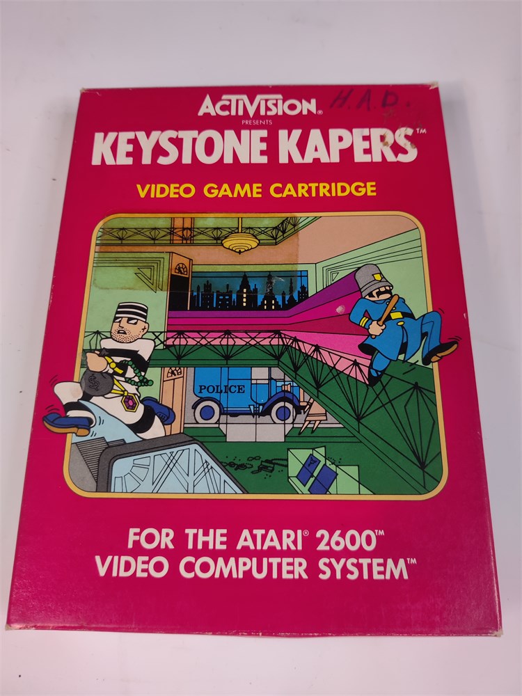 Keystone Kapers is a video game developed by Activision and published for the Atari 2600 in April 1983, and later ported to the Atari 5200, Atari 8-bit family, ColecoVision, and in 1984, MSX. Inspired by Mack Sennett's slapstick Keystone Cops series of silent films, the object of the game is for Officer Keystone Kelly to catch Harry Hooligan before he can escape from a department store. Keystone Kapers was written by Activision designer Garry Kitchen.
