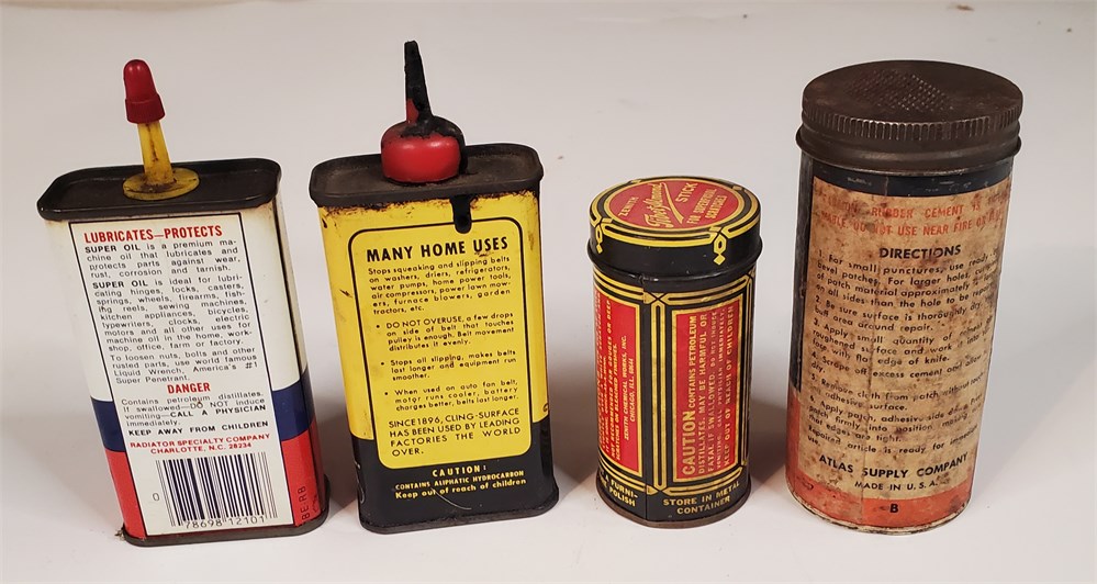 Vintage car repair cans.