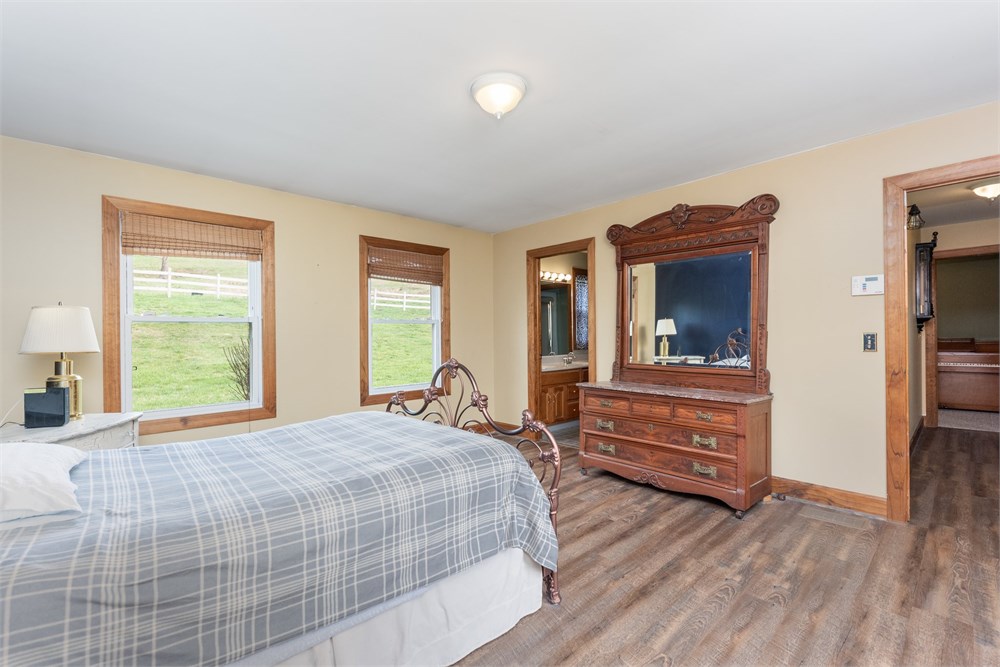 A generous first floor primary, which includes walk in closet and an adjoining bathroom with 2 showers.