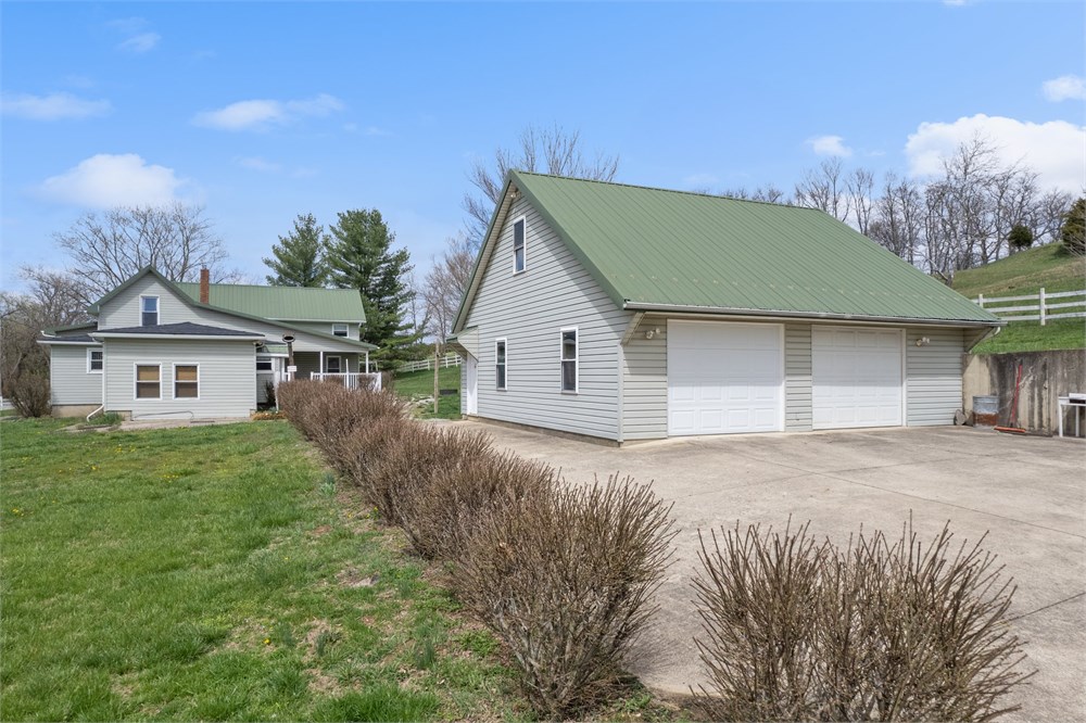 Just steps away from the house is an approx. 32' x 30'  two car detached garage, with concrete floor,  two electric garage door openers and a private entry to the second story loft.