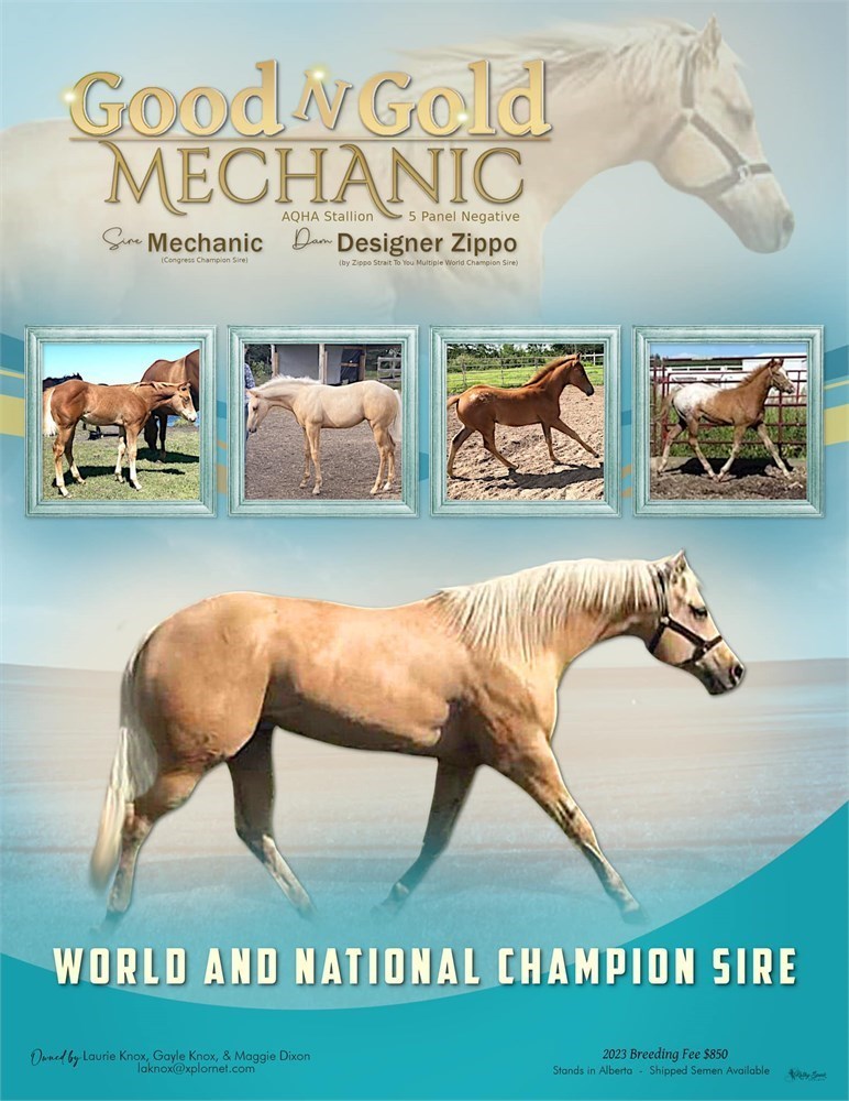 Gorgeous palomino son of Mechanic who is a Reserve Congress Champion and High Point Western Pleasure Stallion in the Natio asa well as being a Congress Champion sire.