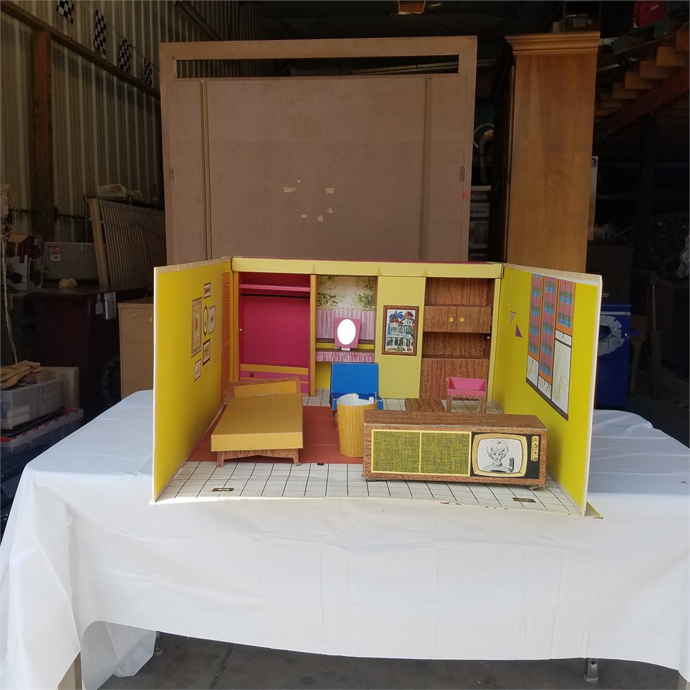Vintage Barbie Dream House Cardboard Doll Furniture Records