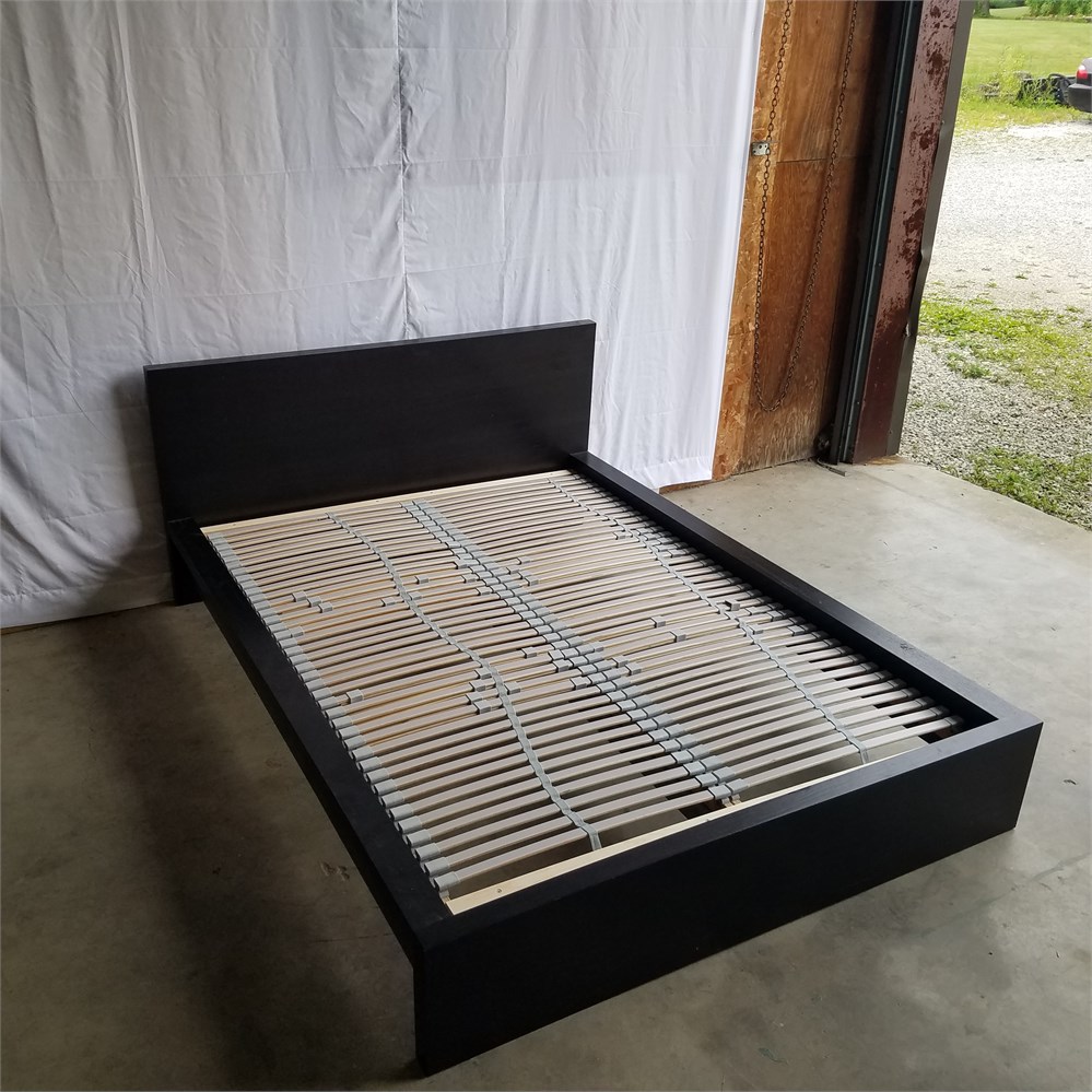 Black/ Brown Ikea dark wood full-size bed frame. Everything in the picture is included.