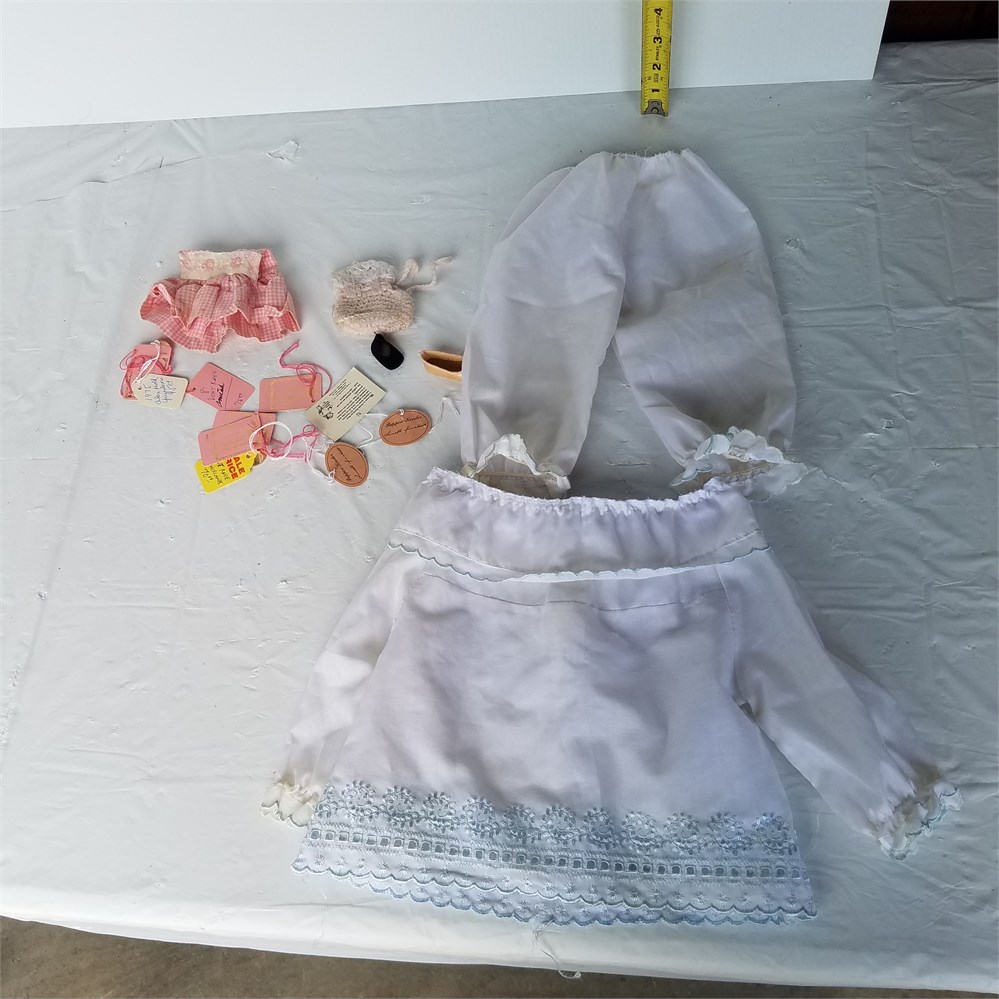 Q: Does the baby bootie belong to lot #163? Is the white outfit tagged Madame Alexander or is it homemade? posted by: Starblazer223 9/8/2019 10:37 AM