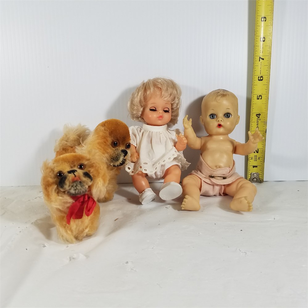 Lot of 2 Dolls and 2 Dogs