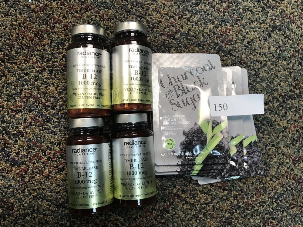 lot of 4 bottles of vit b12 and 11 charcoal and black sugar face masks View Watchlist >
